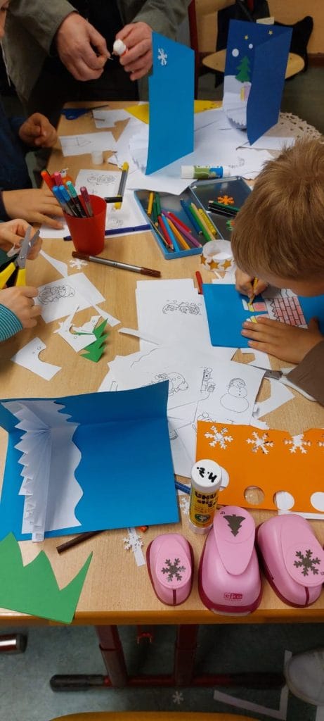 Anschließend konnten die Kinder an vielen weihnachtlichen Bastelständen kreativ werden. Ob gemeinsam mit Eltern, Geschwistern oder Freunden – überall wurde eifrig geschnitten, geklebt und gestaltet. Die fröhliche Atmosphäre, das gemeinsame Tun und die vielen leuchtenden Kinderaugen machten den Nachmittag zu etwas ganz Besonderem.